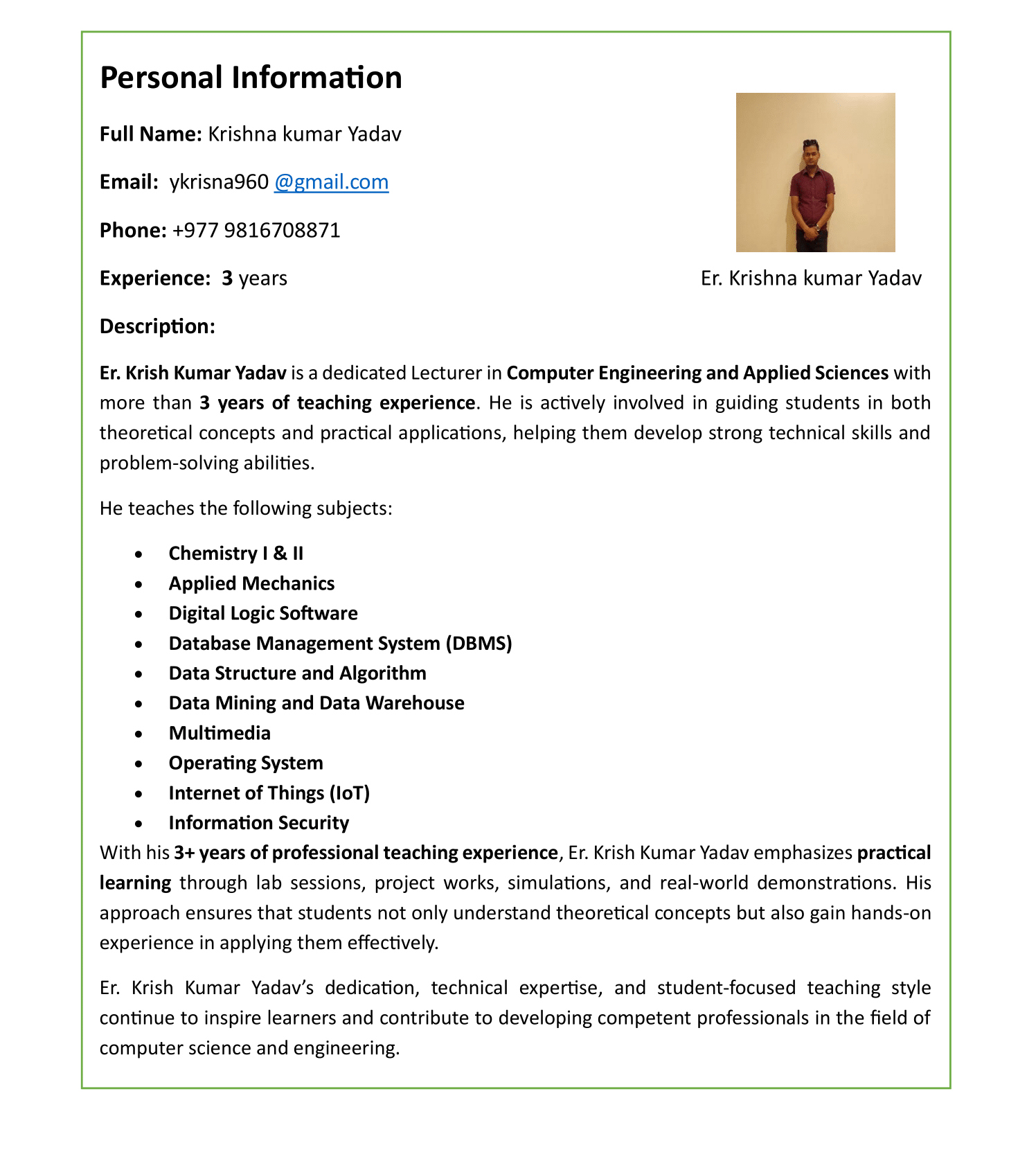 | Database Management System | Data Structure & Algorithm | Object Oriented Programming in Java | Microprocessor & Computer Architecture | Web Technology-II | Statistics and Probability |