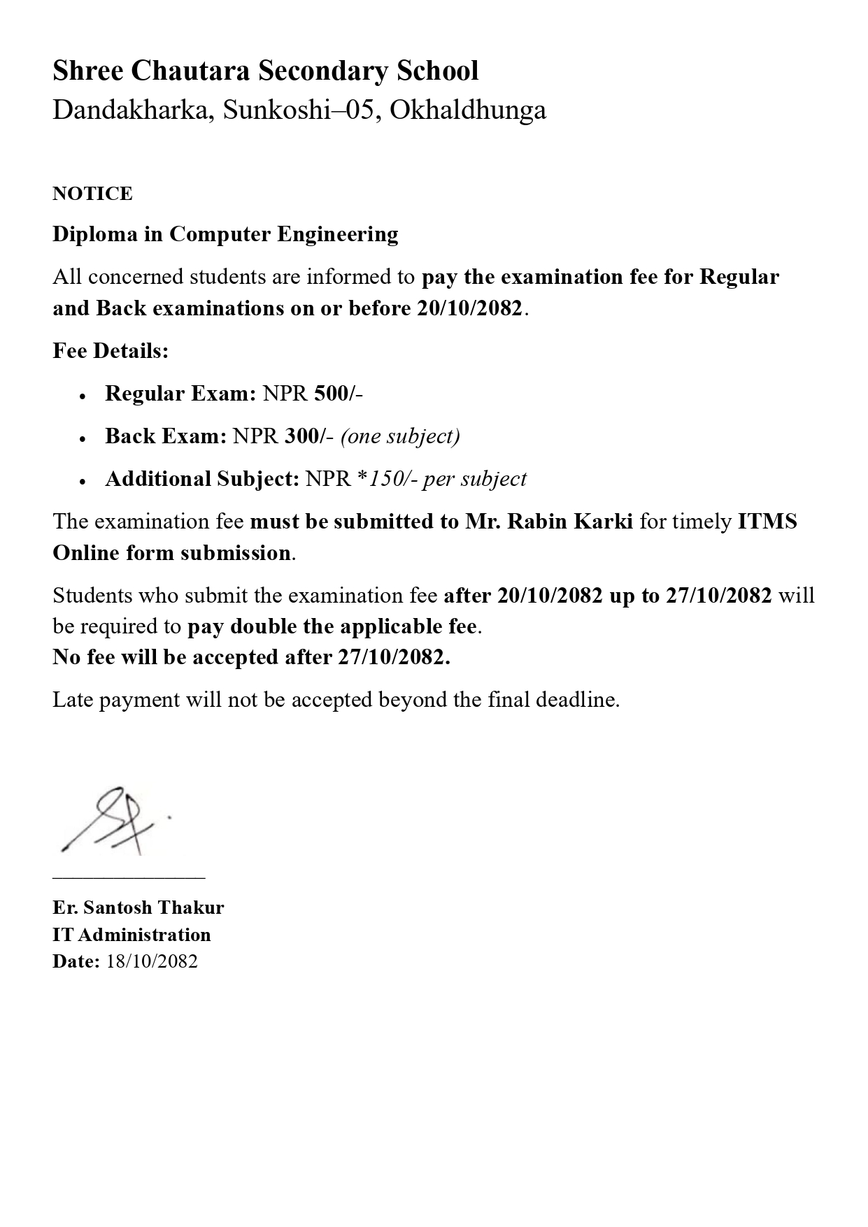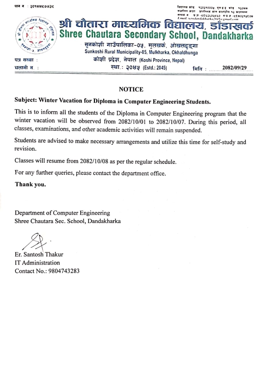 Class Suspened From 2082/09/09 Till: 2082/09/18